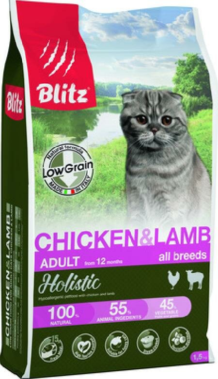 Blitz Низкозерновой корм для кошек, курица ягненок BCD08-1-0040, 0,4 кг (1 шт) интересное: