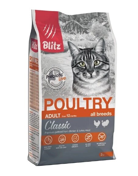 Купить Блитц корм для кошек с Домашней птицей ADULT CATS POULTRY 2 кг , BCD06-1-02000 (2 шт)