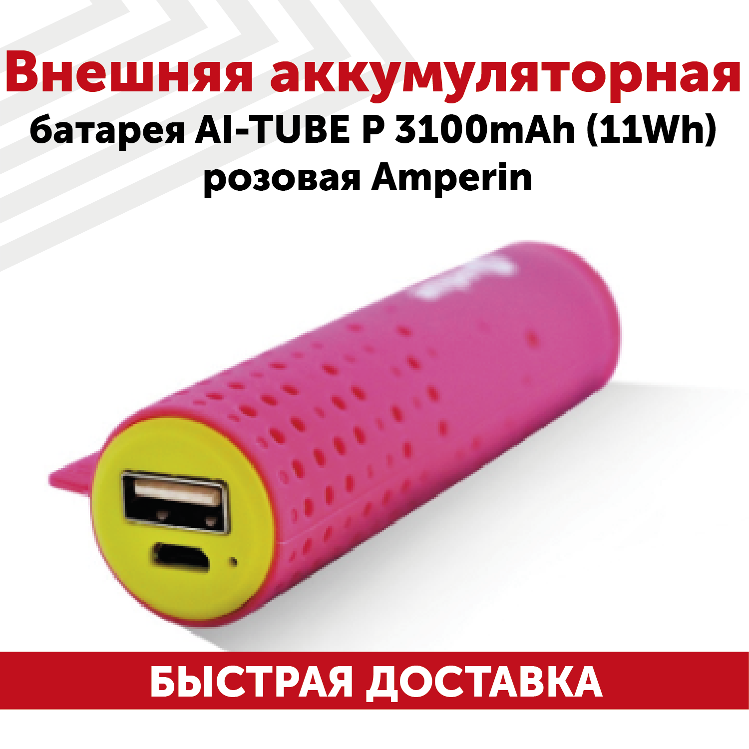 Купить Внешняя аккумуляторная батарея AI-TUBE P 3100mAh (11Wh) розовая Amperin