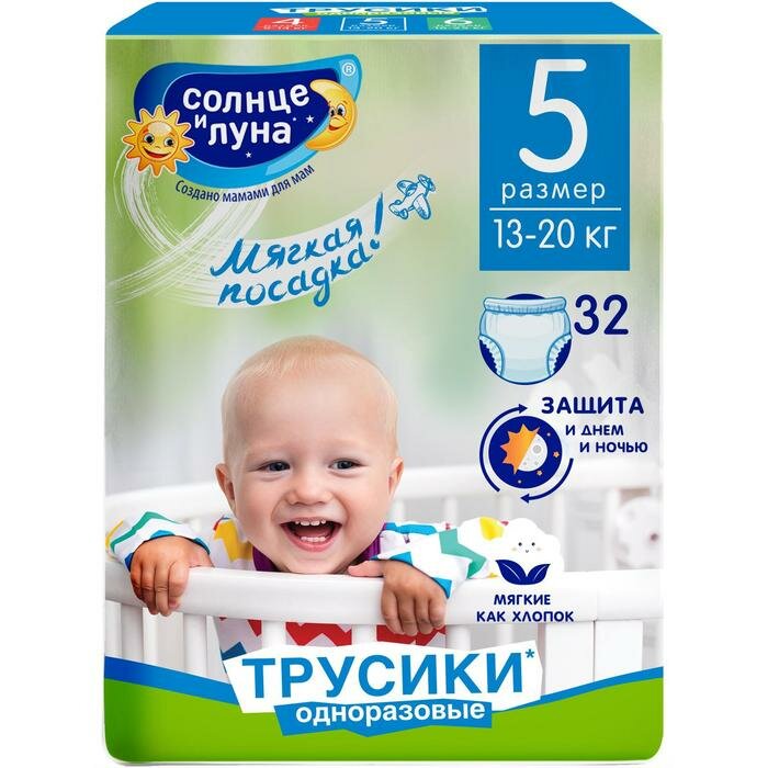 Подгузники-трусики "Солнце и луна" 5/XL, мягкая забота, 13-20 кг, 32 шт./В упаковке шт: 1 интересное:
