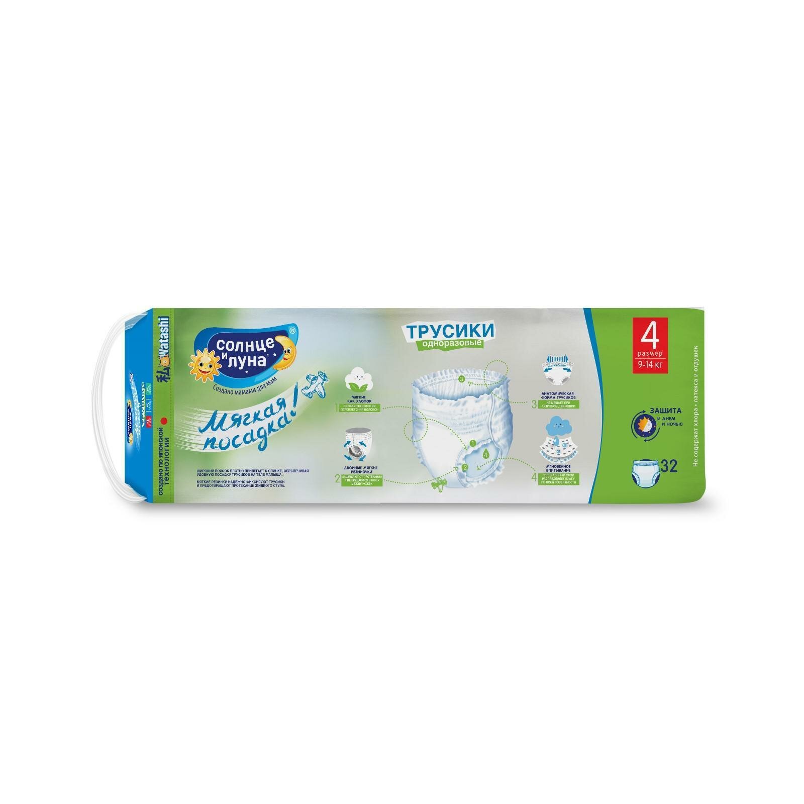 Солнце и Луна Подгузники-трусики "Солнце и луна" 4/L, мягкая забота, 9-14 кг, 32 шт
