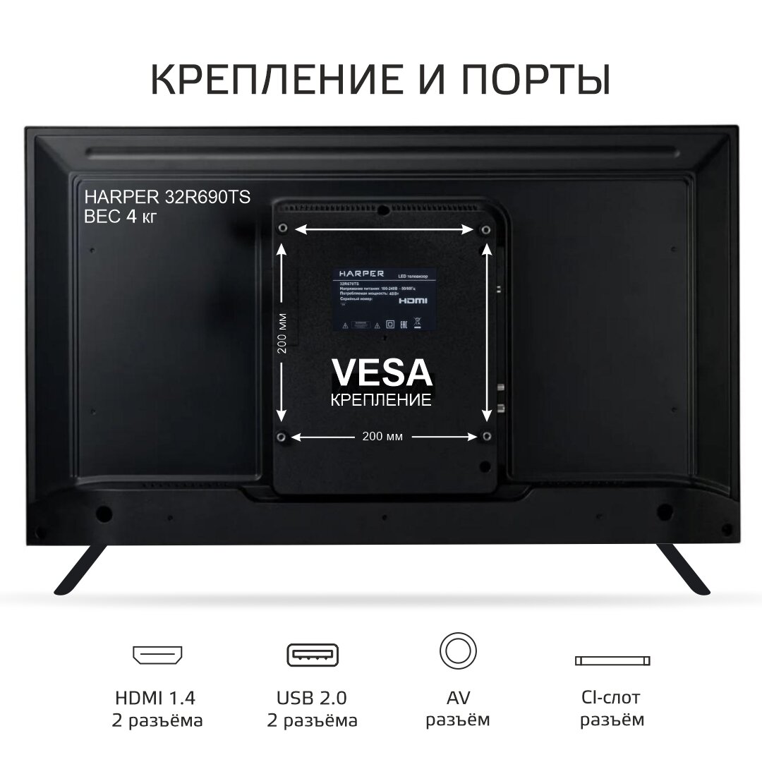 Телевизор HARPER 32R690T, черный интересное: