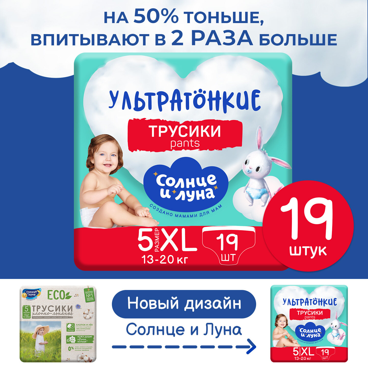 Трусики Солнце и Луна Ультратонкие XL 13-20кг 40 шт