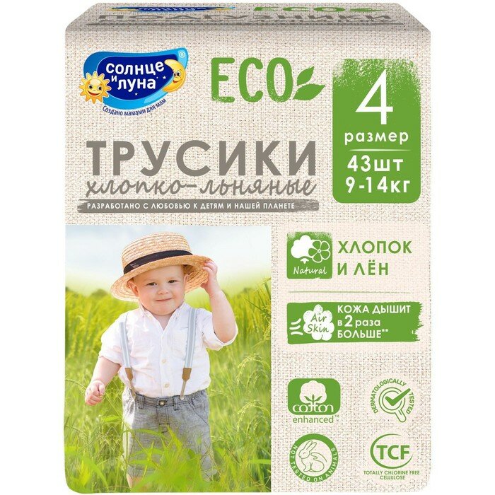 Купить Солнце И луна ECO Подгузники-трусики одноразовые для детей 4/L 9-14 кг 43шт