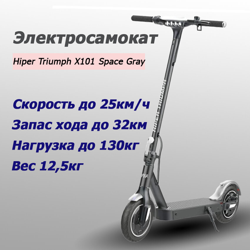 Электросамокат HIPER Triumph X101 (2022) (Электросамокат HIPER,10”надув.шины, 400 Вт, 10,4Ач/36В/375Втч, 25кмч, cер, Triumph X101 Space Gray)