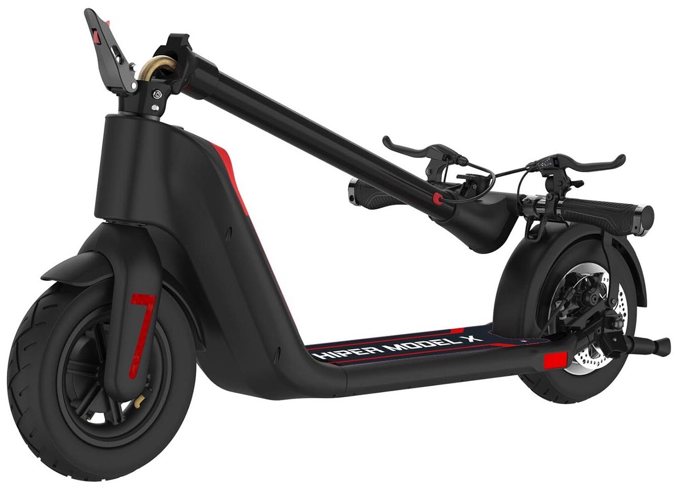 Электросамокат HIPER MODEL X Black, колеса 10” шины надувные шины, 500 Вт мотор, батарея 12,5Ач(48В,600Втч), до 32кмч, амортизатор 2x колес, черный