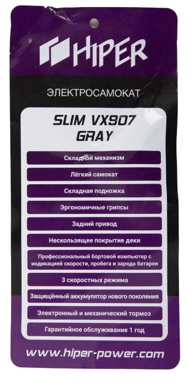 Ниже Вы можете прочитать отзывы на Электросамокат Hiper Slim VX907 Gray, ознакомится с подробными характеристиками, посмотреть интересные обзоры и фотографии на Электросамокат Hiper Slim VX907 Gray.