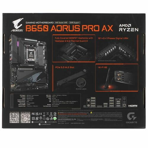 Материнская плата GigaByte B650 Aorus Pro AX (rev. 1.0) (ATX, B650, 4хDDR5, 3xM.2, 2xPCIe x16, 1xPCIe x1, HDMI, USB, RJ-45)