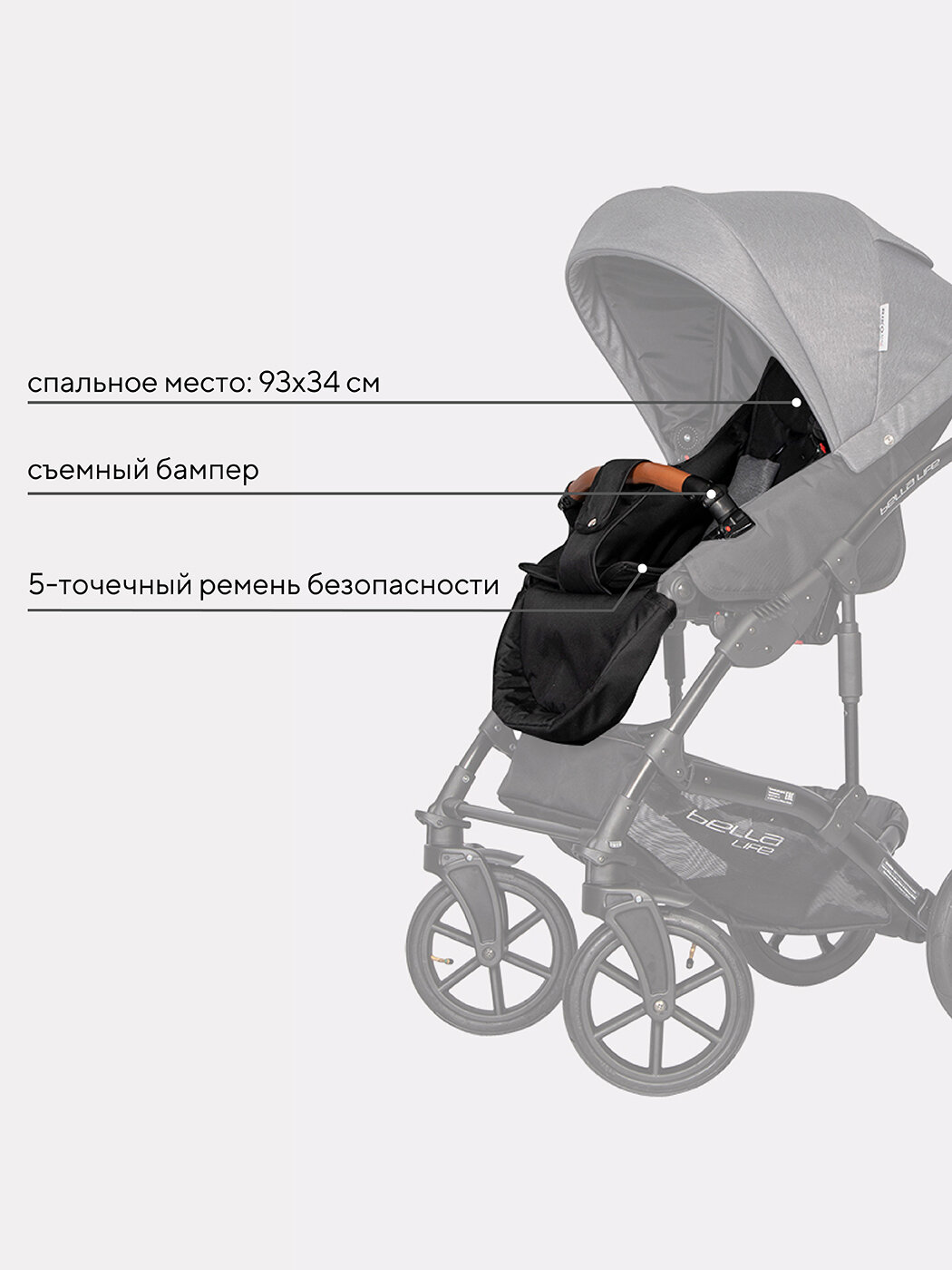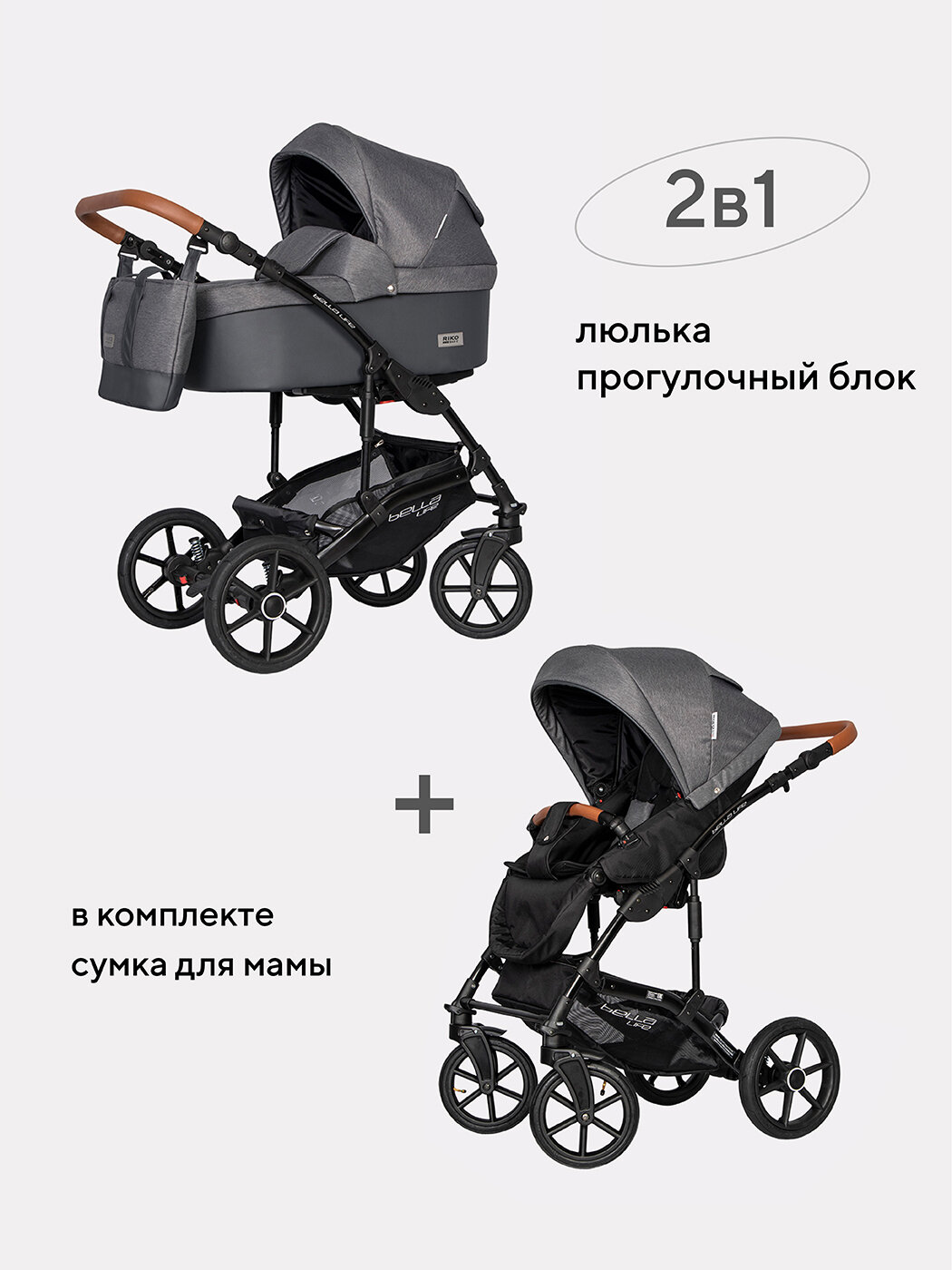Коляска BELLA LIFE (2 в 1) (RIKO BASIC) 06 Anthracite (графит) интересное: