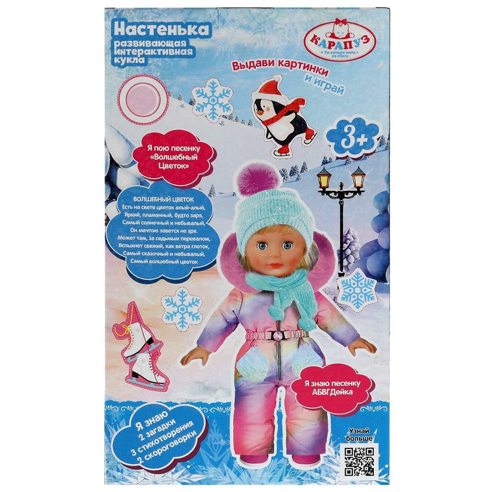 Кукла озвученная Настенька, 30 см 100 фраз, коньки Карапуз Y30D-POLI11-WINTER-22-RU интересное: