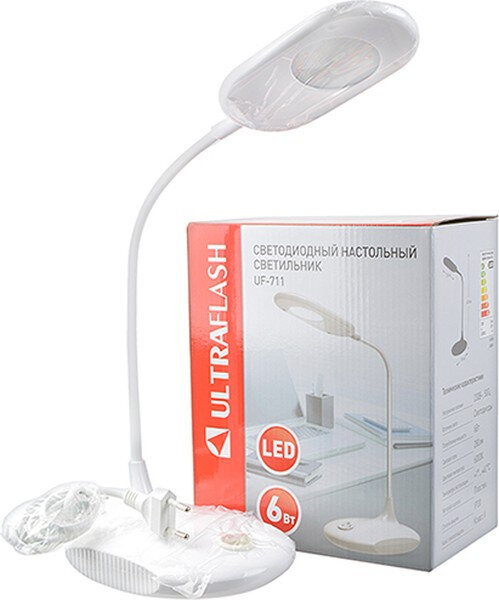 Ultraflash UF-711 C01 св-к св/д настольный 6W(280lm) 6000K 6K пластик/белый