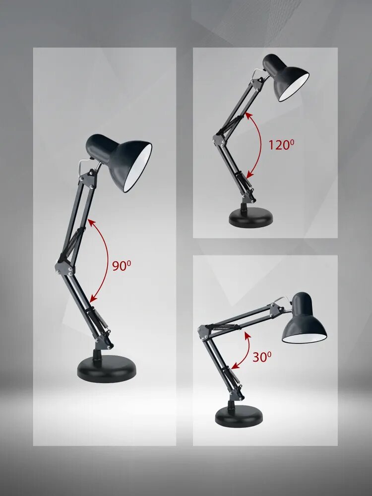 Лампа настольная Ultraflash UF-313, складная, E27, 60Вт, черный