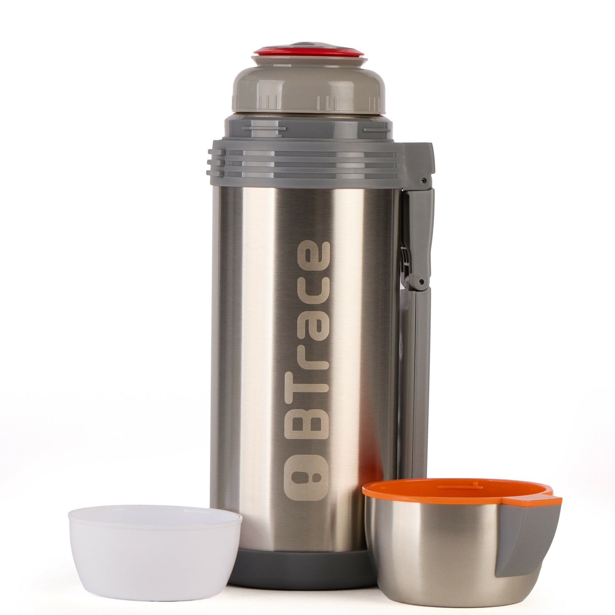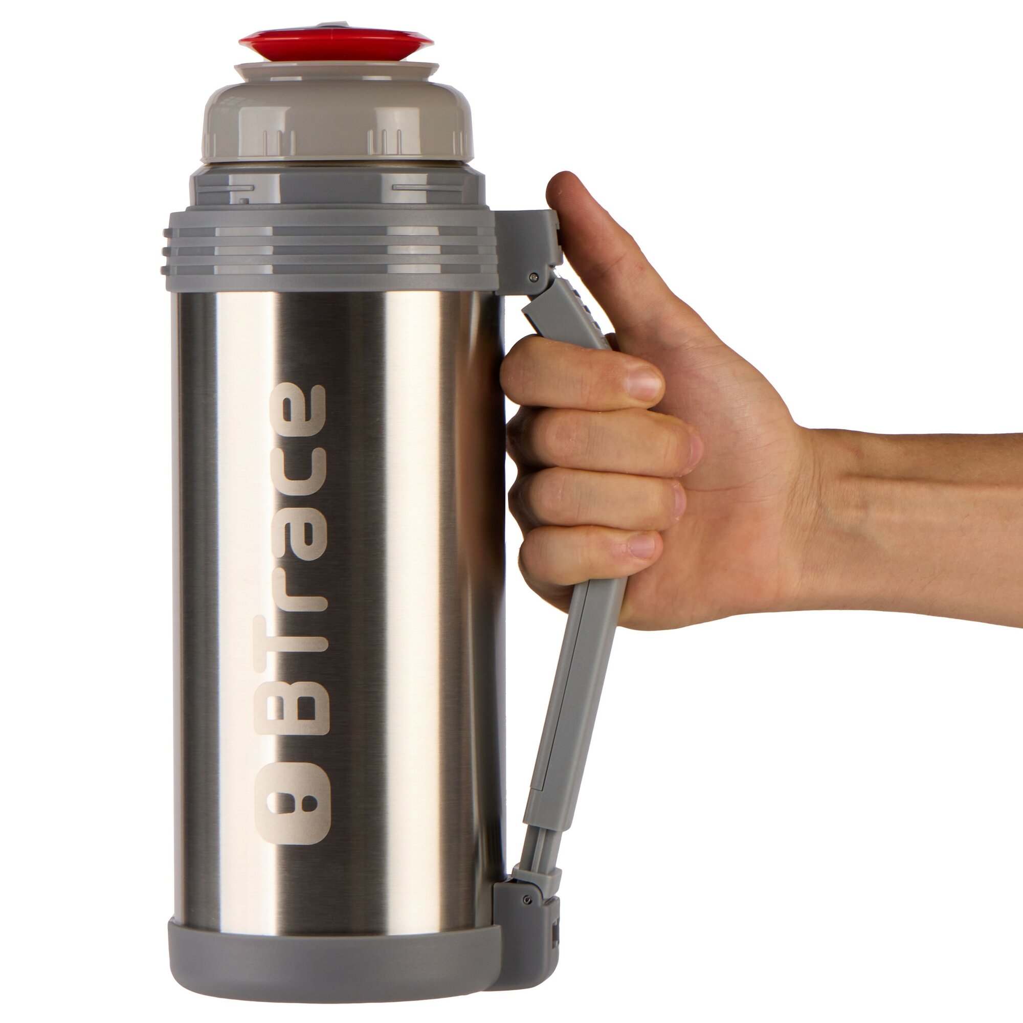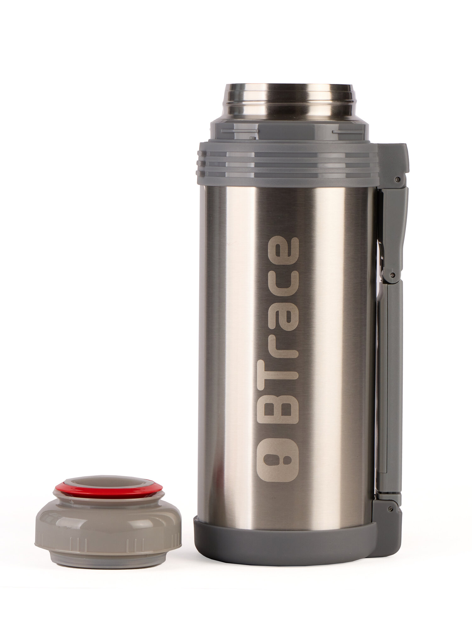Термос для еды и напитков Btrace 1,8 л, двойные стенки, серый, нержавеющая сталь, крышка-чашка, непроливайка, складная ручка