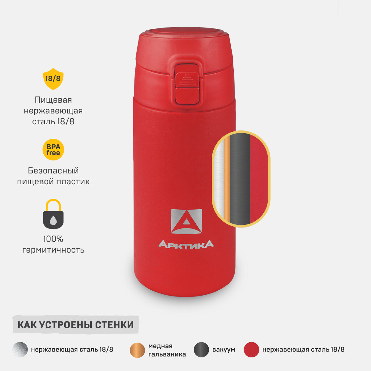 Термокружка для чая и кофе Арктика 705-500 красный 0,5 литров термос для напитков с кнопкой-фиксатором
