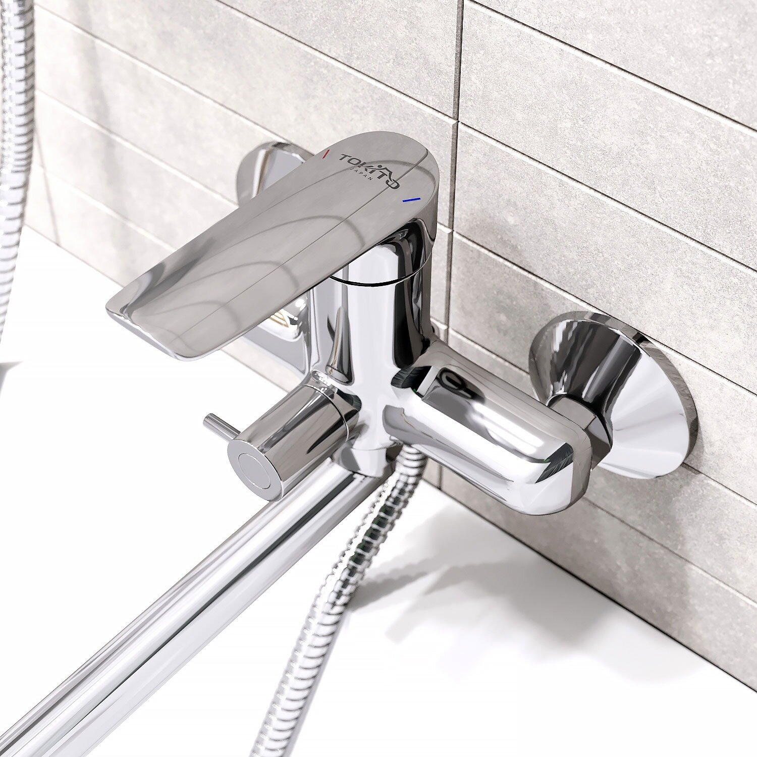 Смеситель для ванной с длинным изливом с лейкой TOKITO TOK-MIT-1015 серия MITSUISHI, латунный, хром