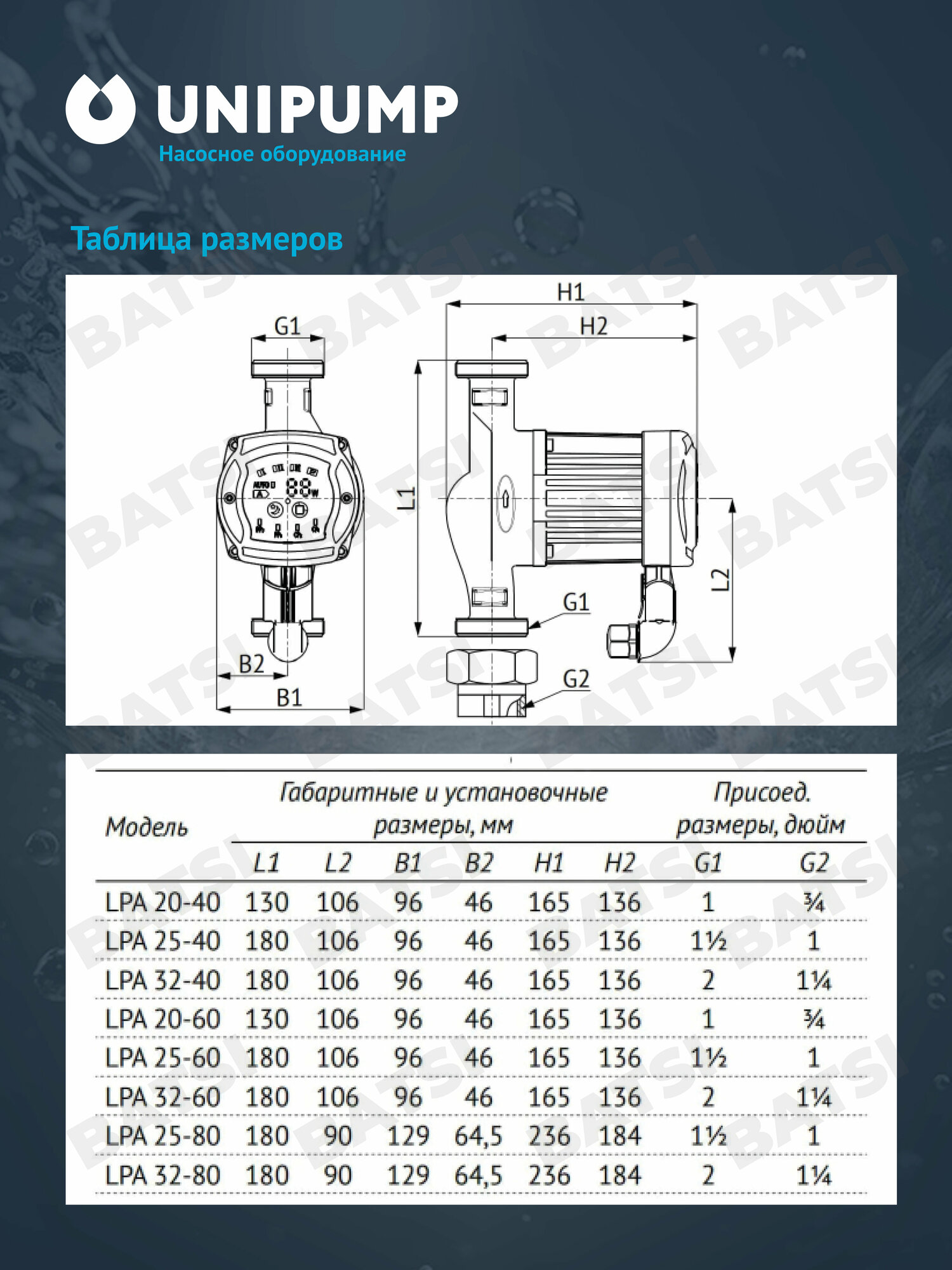 Циркуляционный насос Unipump LPA 32-40 для систем отопления, водяного теплого пола