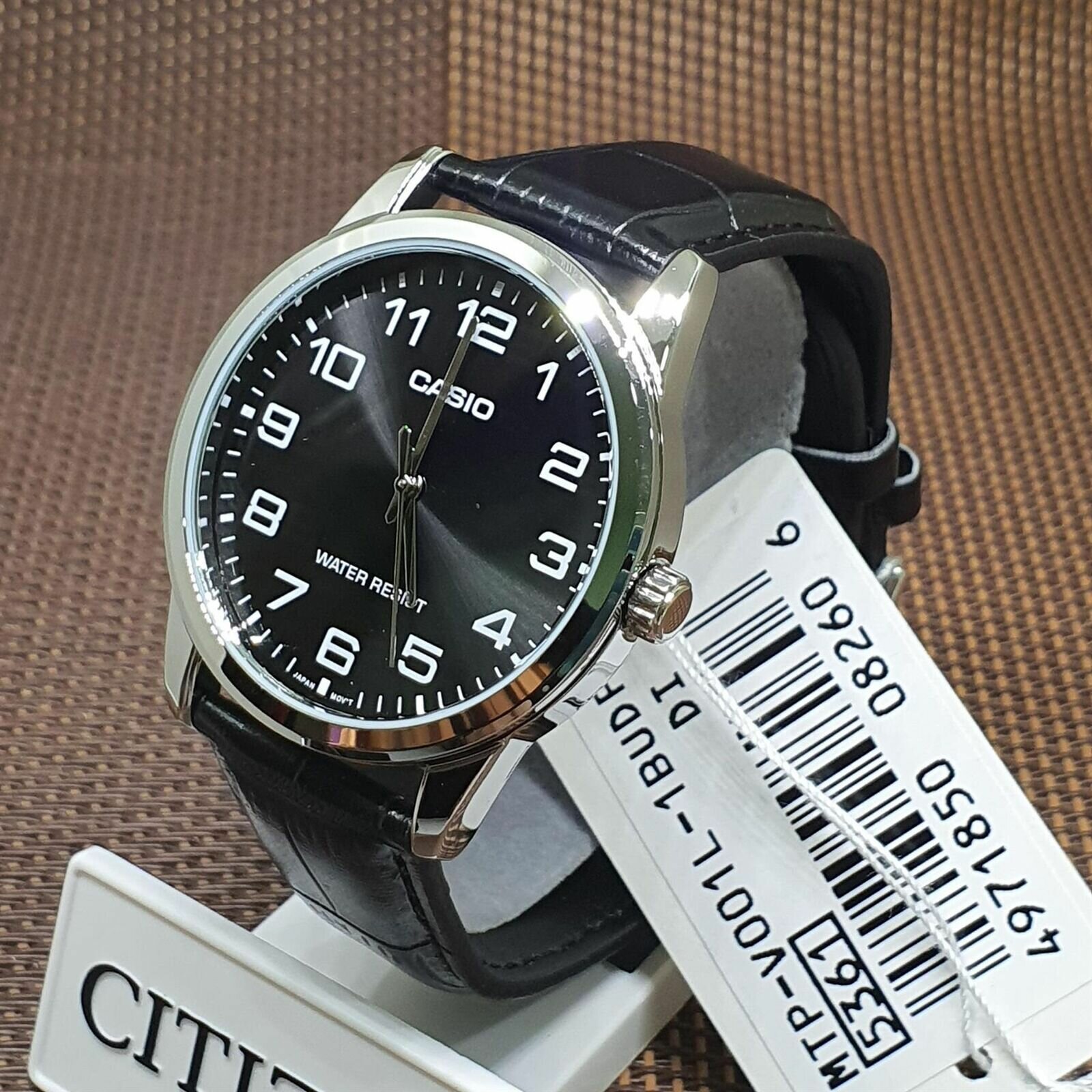 MTP-V001L-1B Casio наручные часы кварцевые WR30 (3 атм) мужские серебряный, хром, черный минеральное стекло