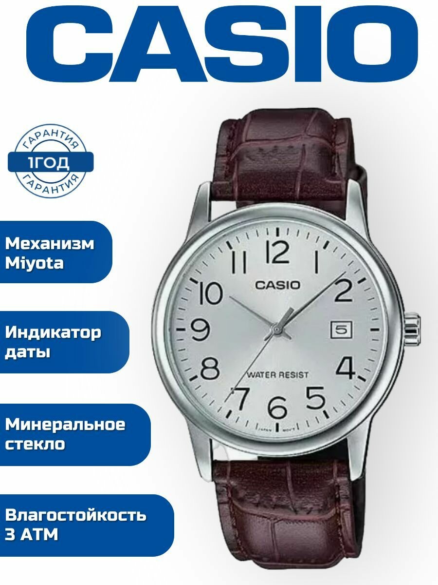 Наручные часы CASIO MTP-V002L-7B2, серебряный, коричневый