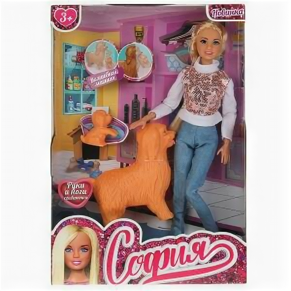 Игрушки карапуз Кукла 29 см София, руки и ноги сгиб, магшнитные собака и щенок, кор карапуз интересное: