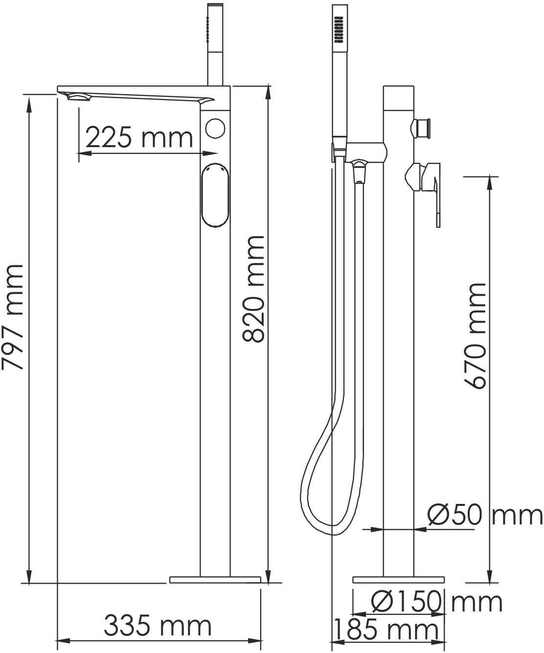 Смеситель Wasserkraft Elbe 7421 напольный, для ванны с душем