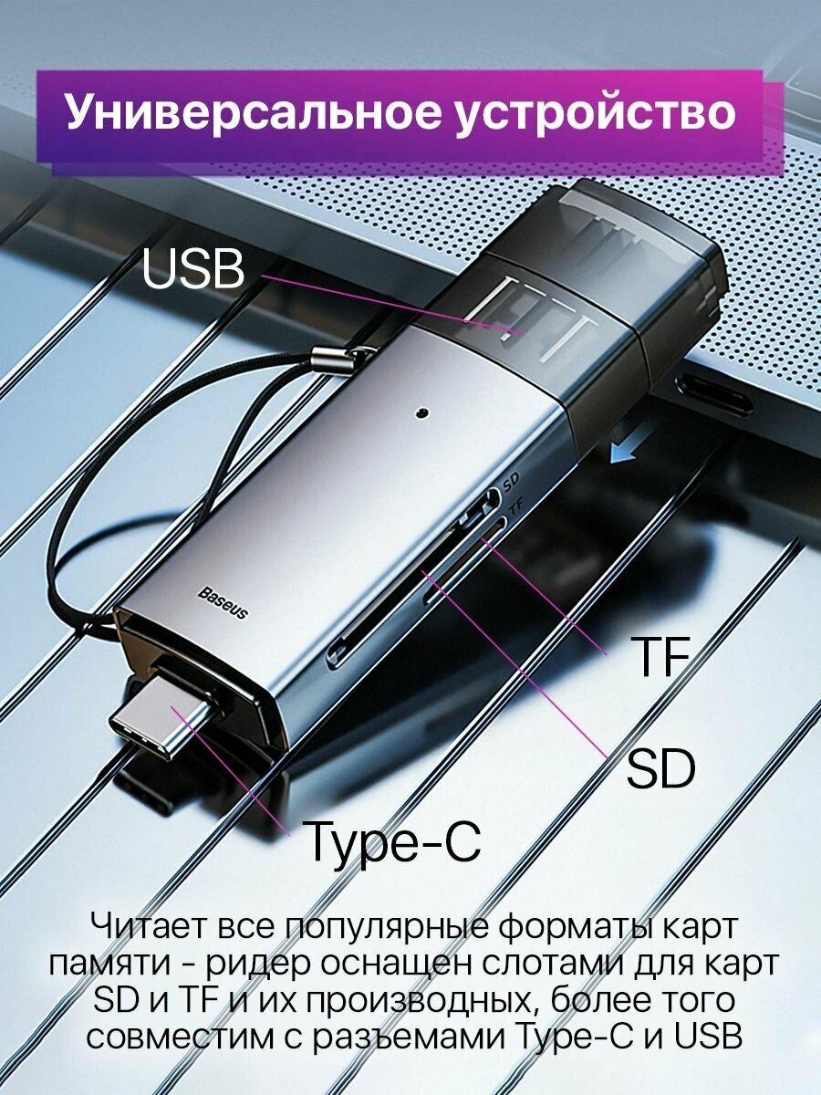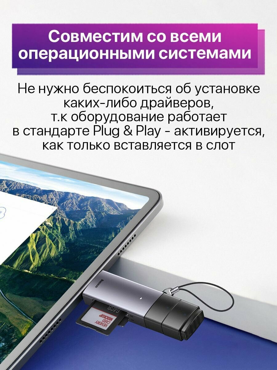 Картридер Baseus Lite Series USB-A/Type-C - SD/TF Card Reader Grey WKQX060113 интересное: