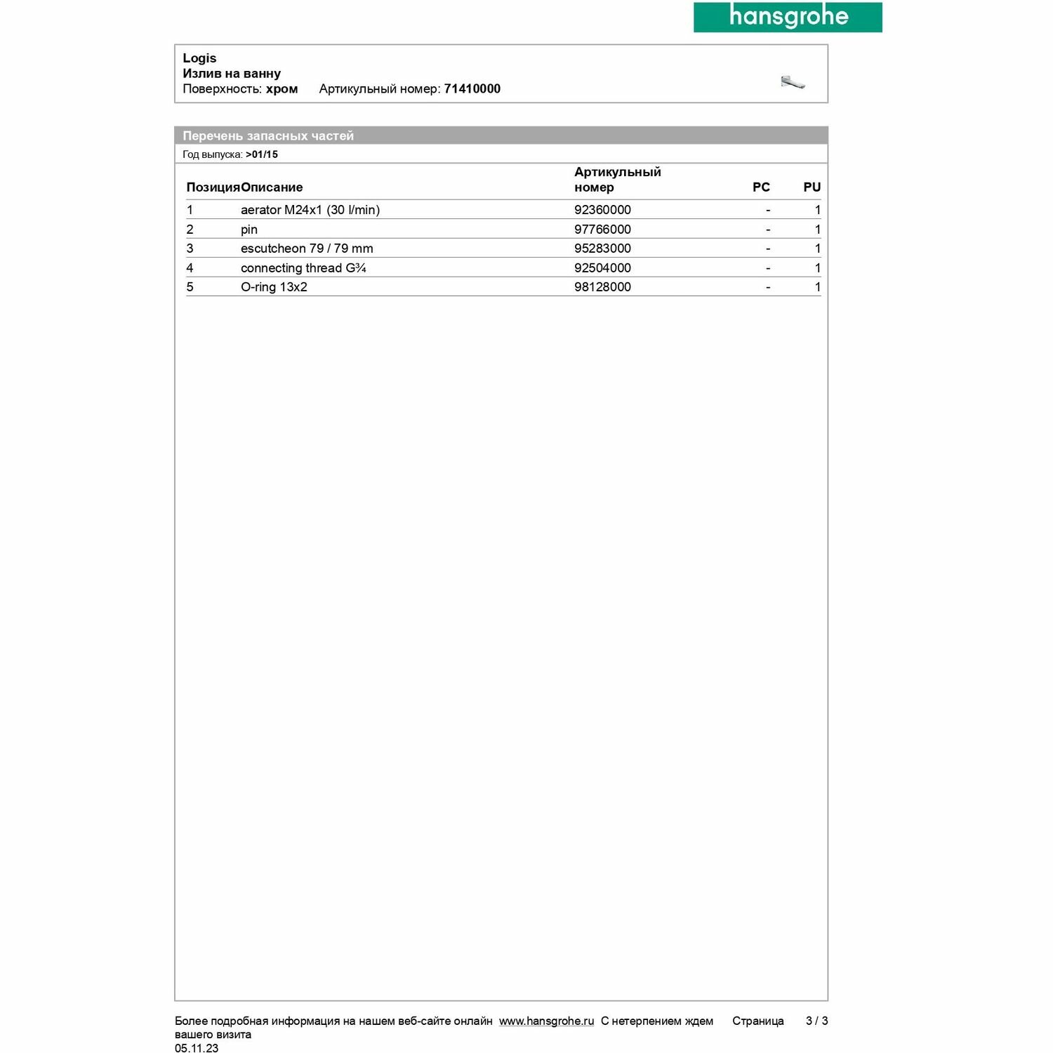 Излив на ванну Hansgrohe Logis 71410000 интересное: