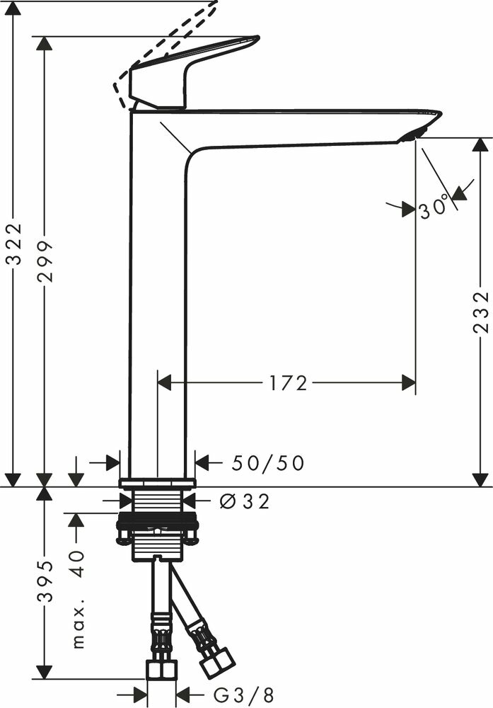 Смеситель для раковины Hansgrohe Logis Fine 240 71258000 без донного клапана