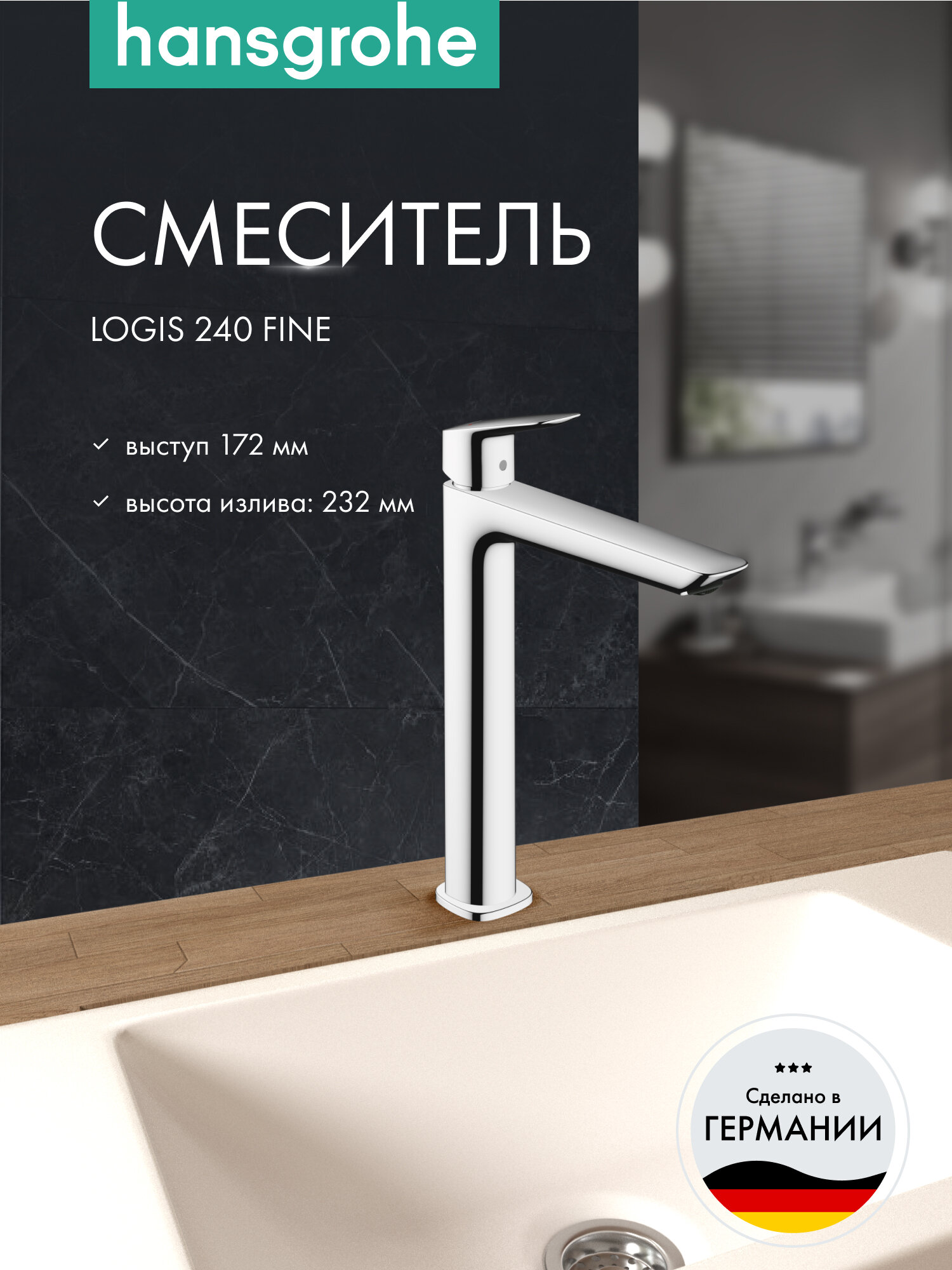 Смеситель для раковины Hansgrohe Logis 240 Fine, без сливного гарнитура, хром 71258000