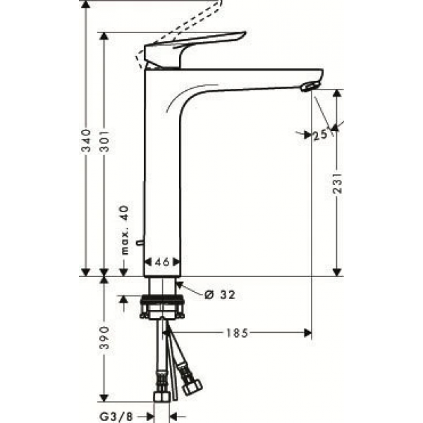 Logis E 23,1см, высокий смеситель на столешницу, неповоротный излив, с донным клапаном, арт. 71162000, Hansgrohe
