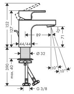 Смеситель для раковины Hansgrohe Vernis Shape HG 71560670 71 мм, со сливным гарнитуром, 5 л/мин матовый черный