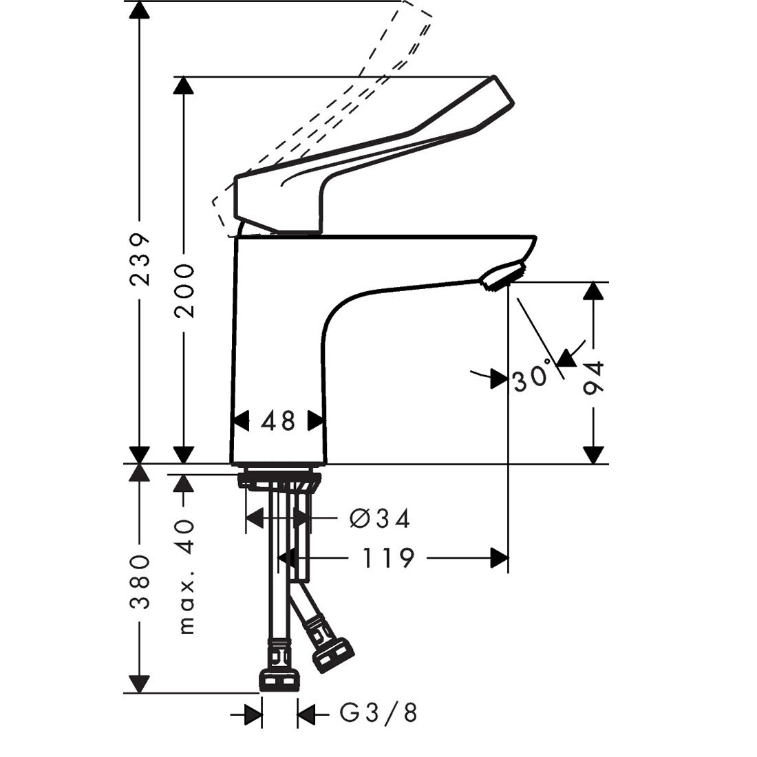 Смеситель hansgrohe Focus для раковины без сливного набора, с длинной рукояткой 31915000