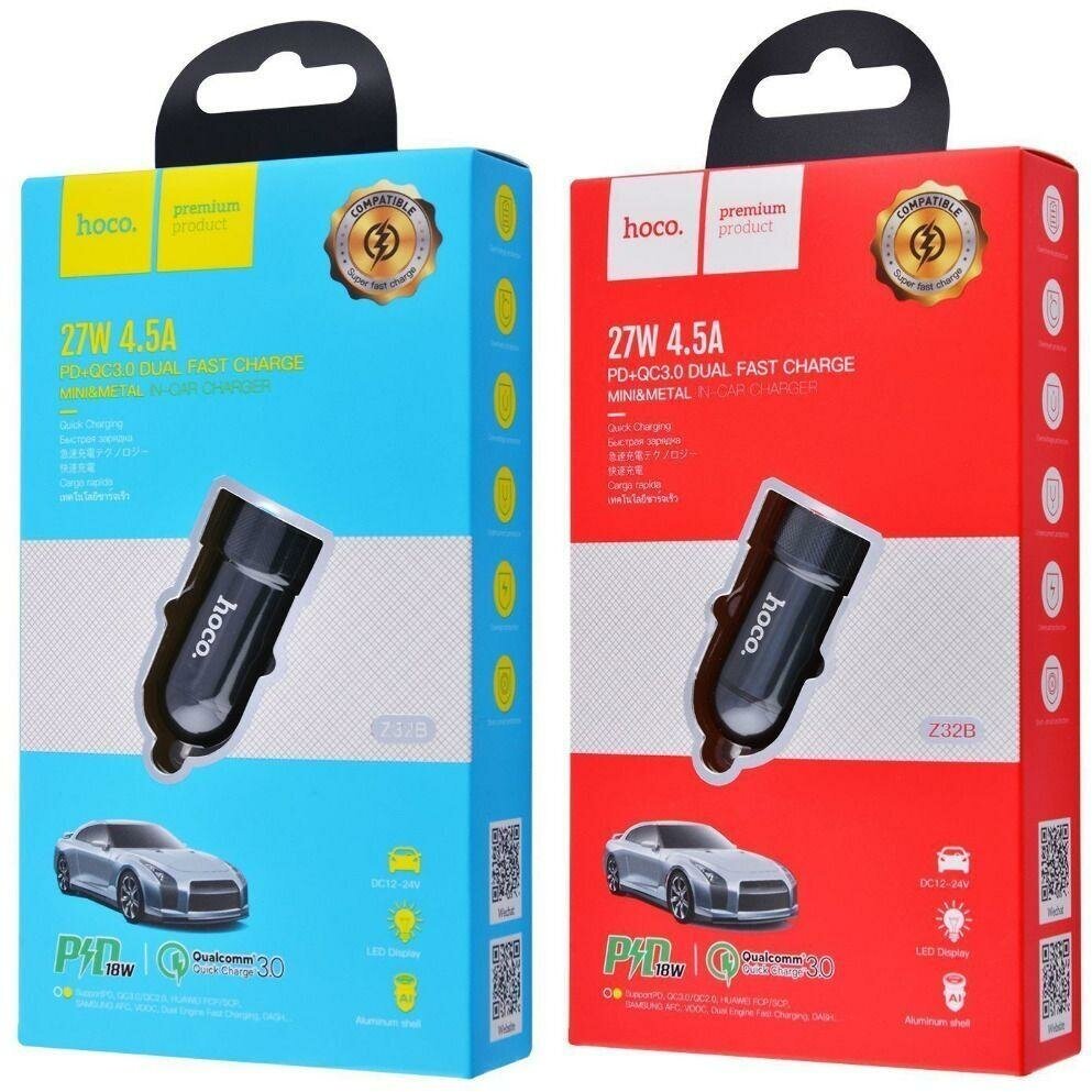 Автомобильное зарядное устройство (АЗУ) Hoco Z32B QC 3.0 (USB+Type-C), 3 А, черный
