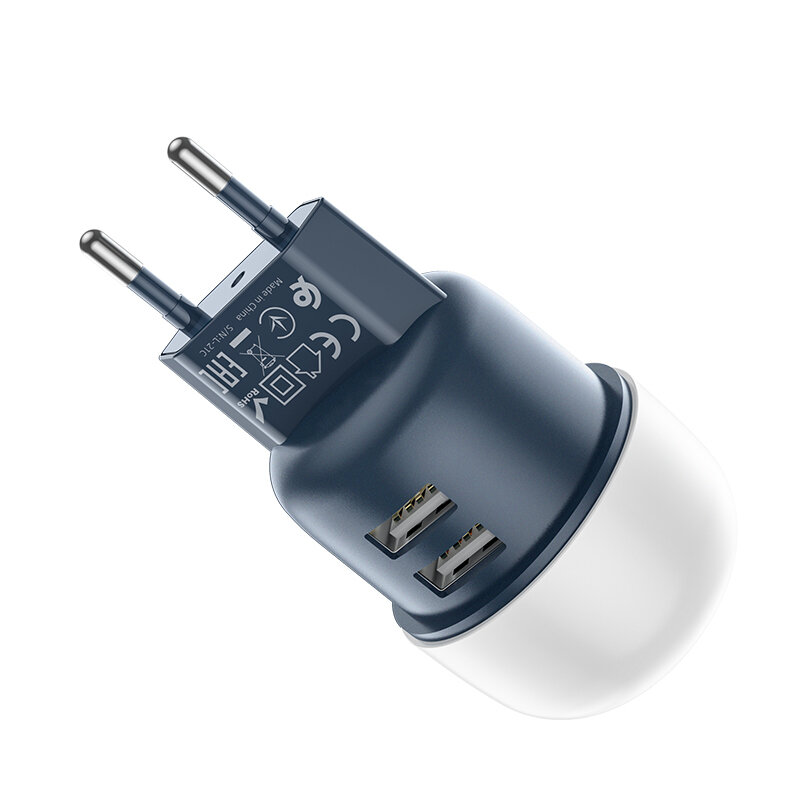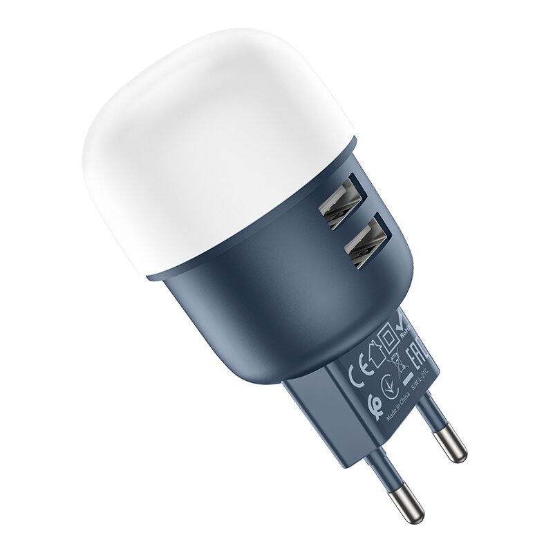 Сетевое зарядное устройство (СЗУ) Hoco C87A (2 USB) + ночник, 2.4 А, синий