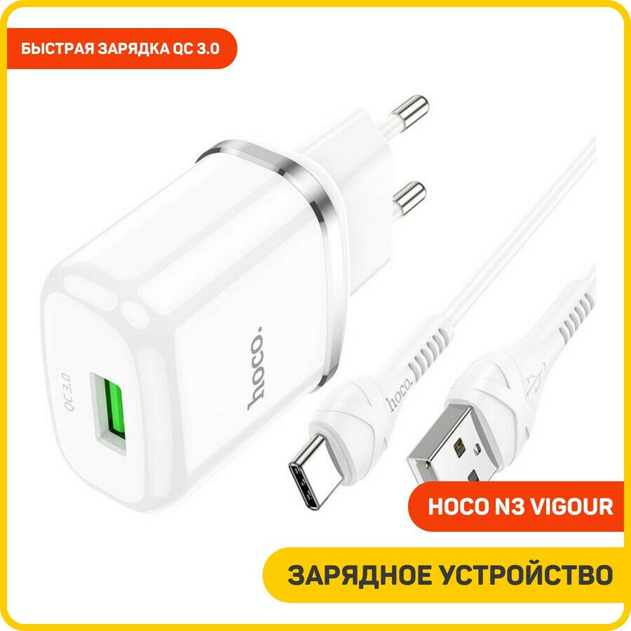 Сетевое зарядное устройство (СЗУ) Hoco N3 Vigour QC 3.0 (USB) + кабель Type-C, 3 А, белый