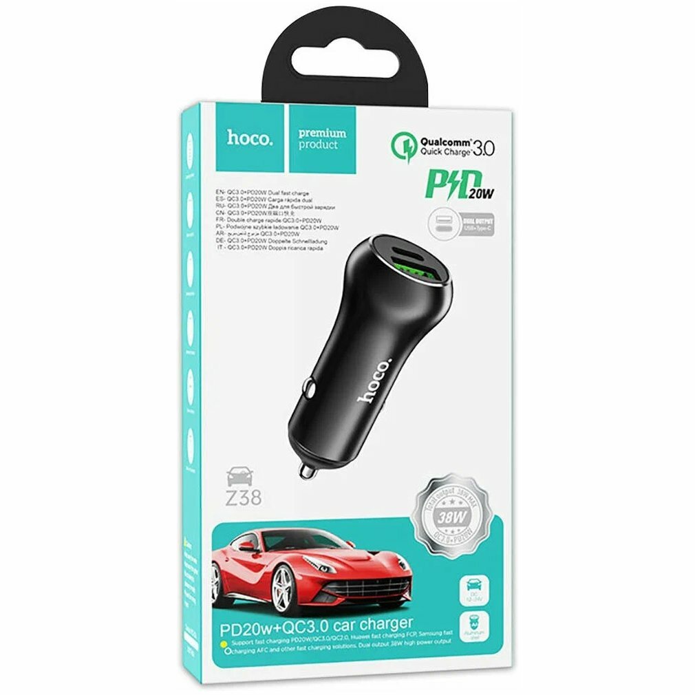 Автомобильное зарядное устройство, 1 USB QC3.0+1 PD 20W (Z38), HOCO, черный