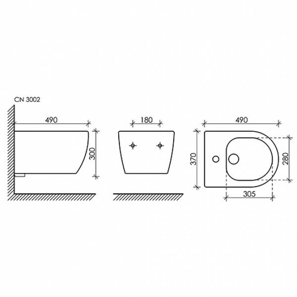 CN3002 Подвесное биде PLAY, 1 отверстие под смеситель, с крепежом для скрытого монтажа