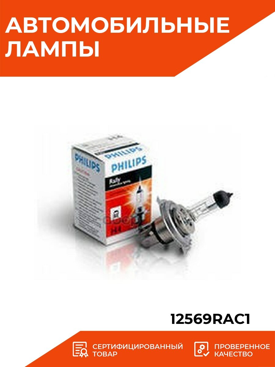 PHILIPS Лампа головного света (Rally) H4 12V 100/90W Коробка 1 шт. 12569RAC1