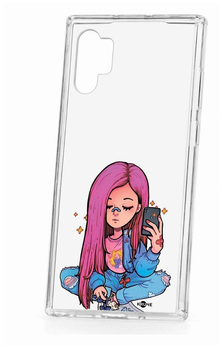 Чехол для Samsung Galaxy Note 10 Plus Kruche Print Pink Hair,пластиковая накладка,силиконовый бампер с защитой камеры,защитный прозрачный с рисунком интересное: