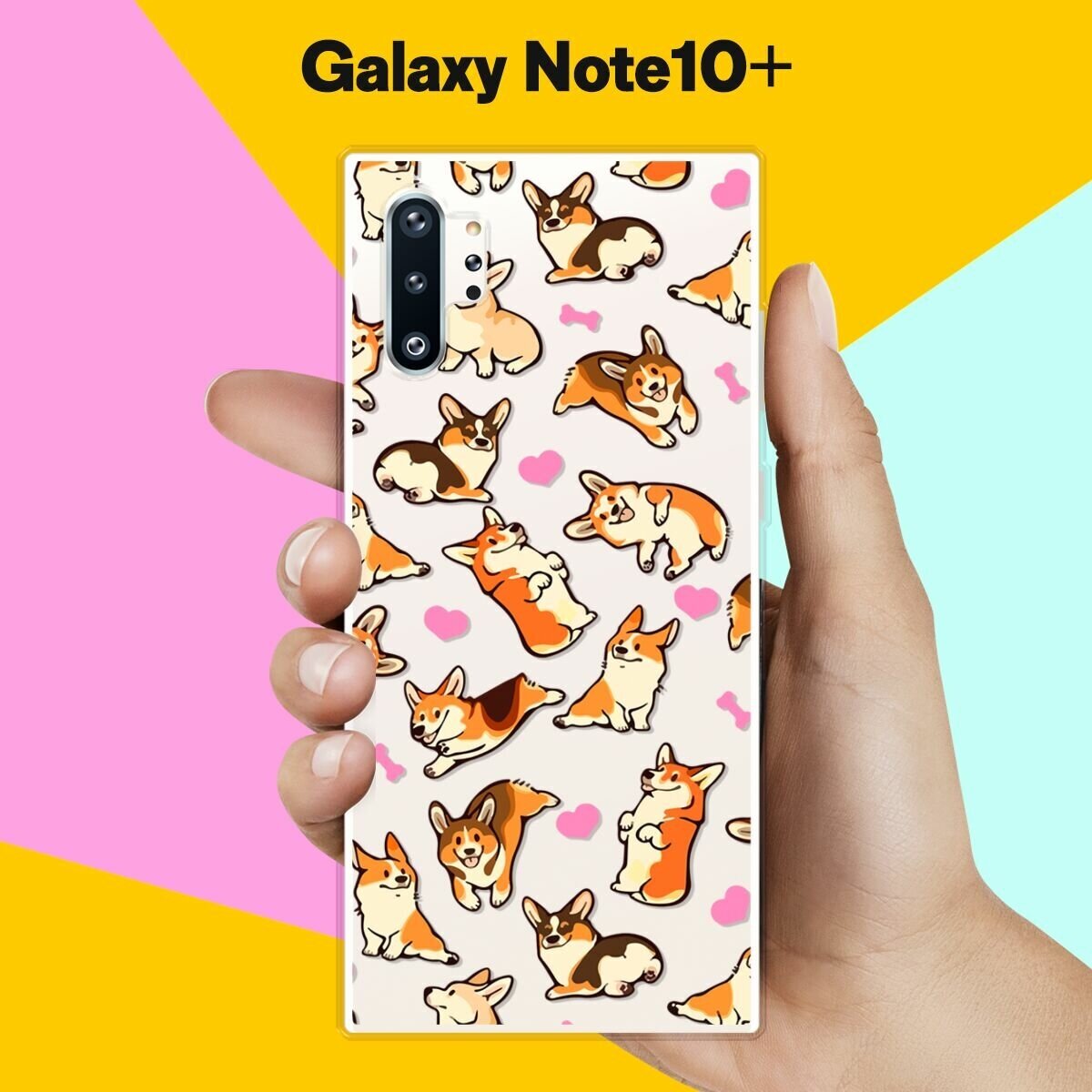 Силиконовый чехол на Samsung Galaxy Note 10+ Узор из корги с сердцами / для Самсунг Галакси Ноут 10 Плюс интересное: