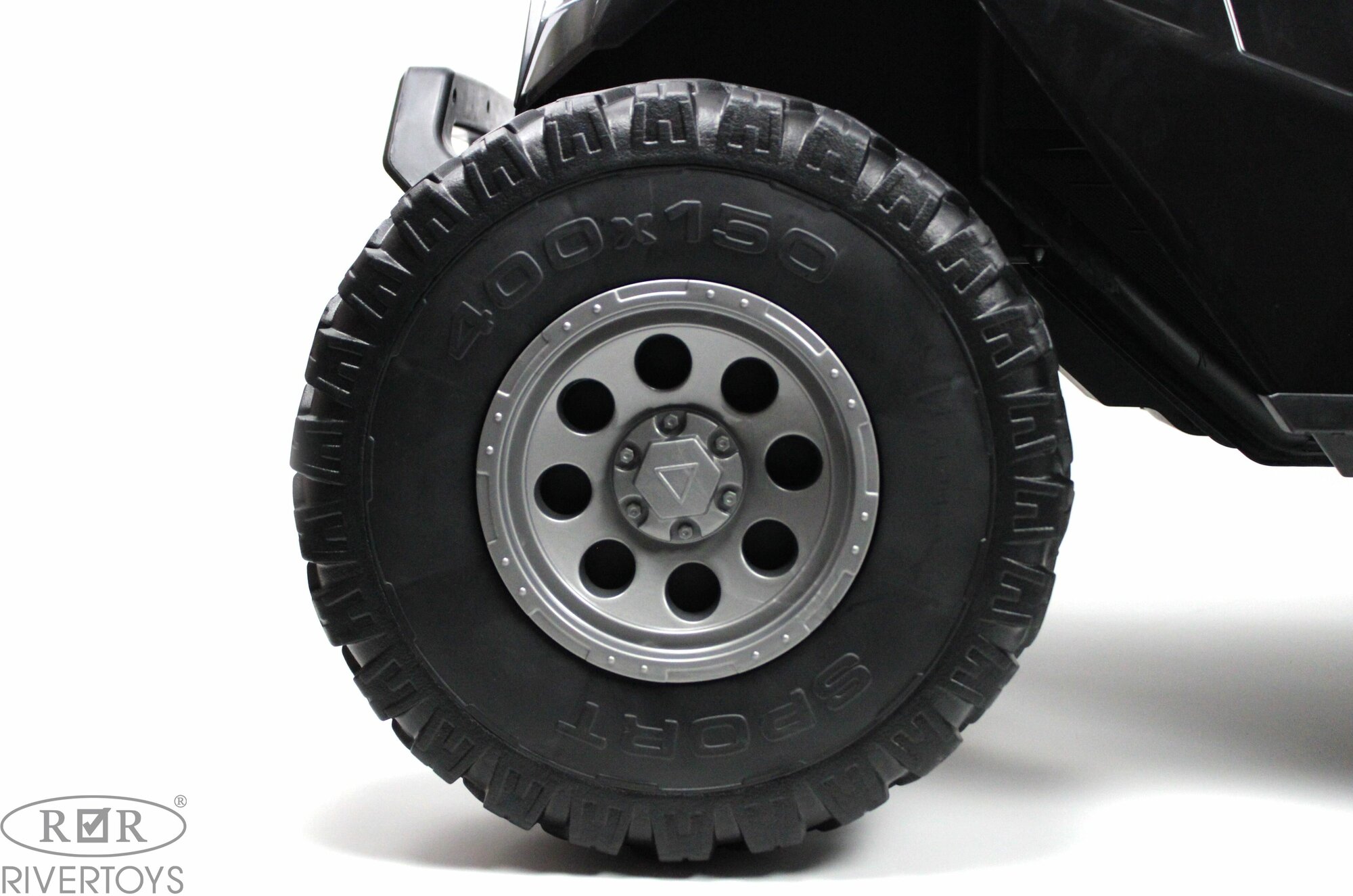 Детский электромобиль RiverToys A707AA 4WD черный карбон с дистанционным управлением, двухместный, полноприводный