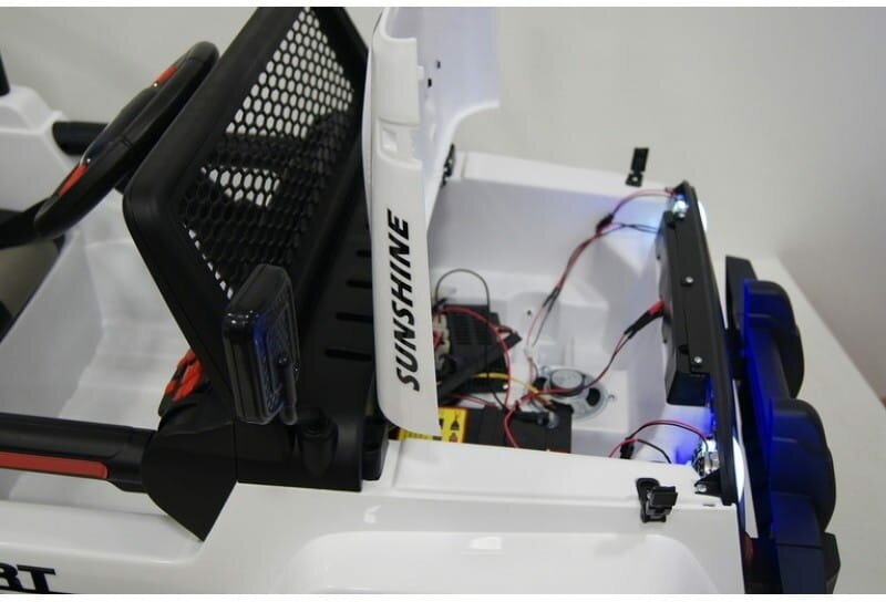 | Особенности | индикатор заряда / перемещение по принципу "чемодан" / открывается капот / задний ход / требуется частичная сборка / двухместный / плавный ход |