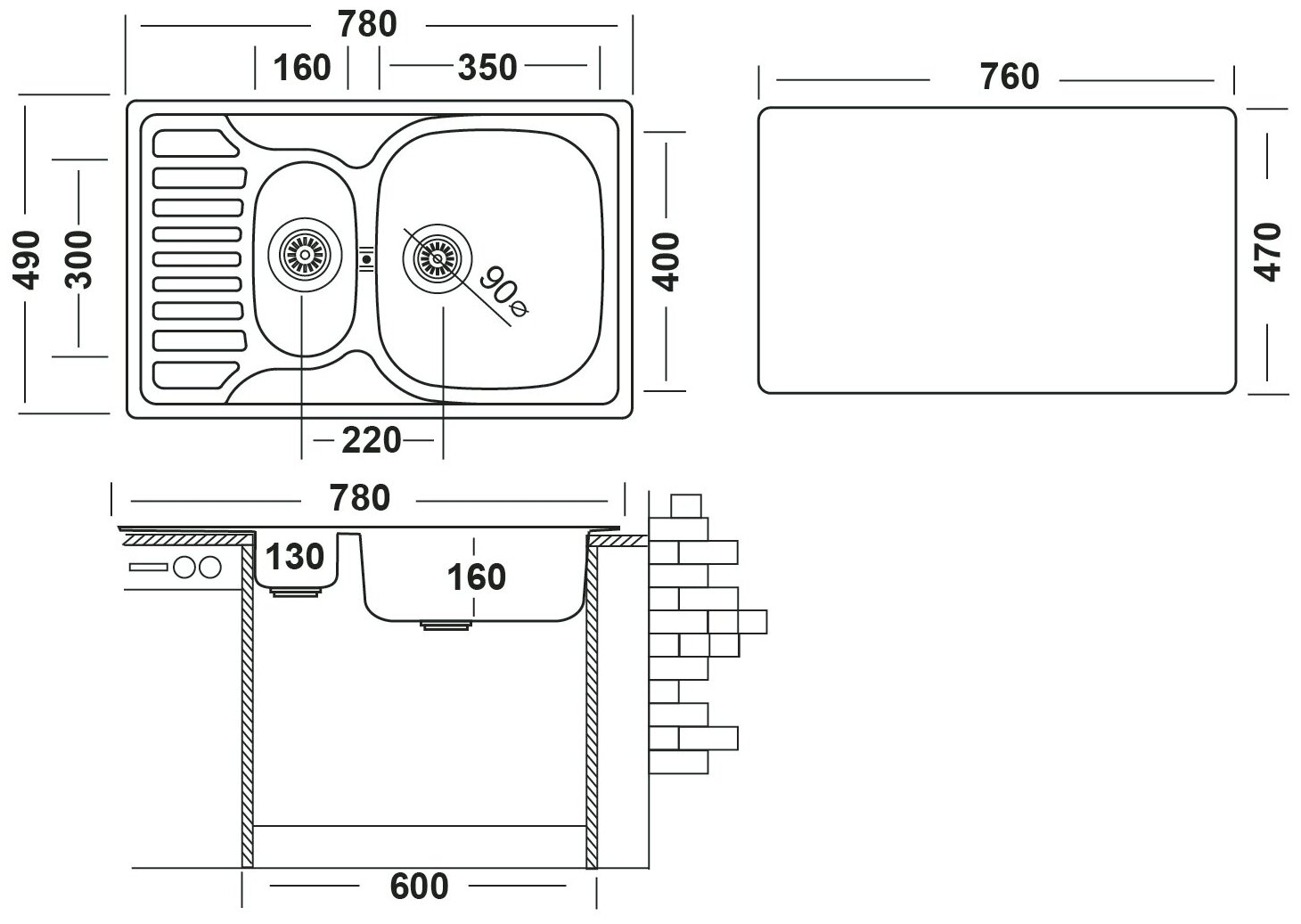| Особенности | дополнительная чаша / отверстие под смеситель |