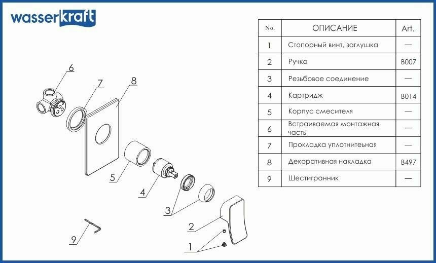 WasserKRAFT Смеситель для душа Wasserkraft Aller 10651W С внутренней частью