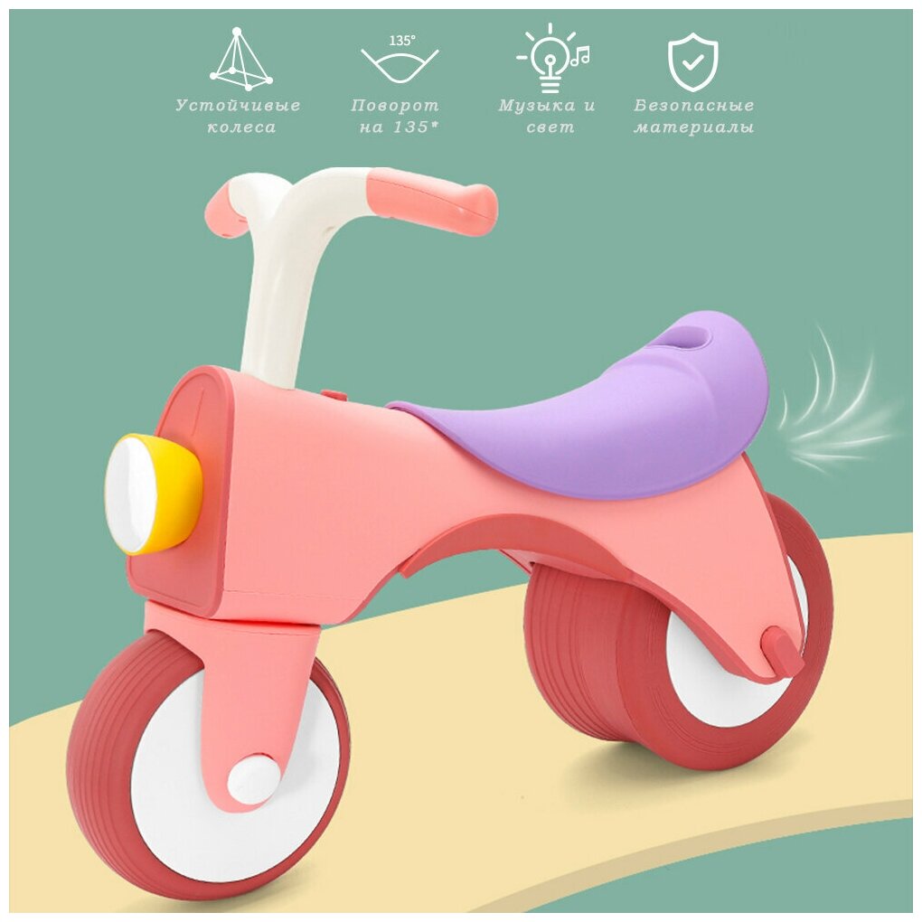 Детская каталка-толокар Arolo 3в1 с безопасными колесами, встроенной музыкой и фонарем, цвет фламинго интересное: