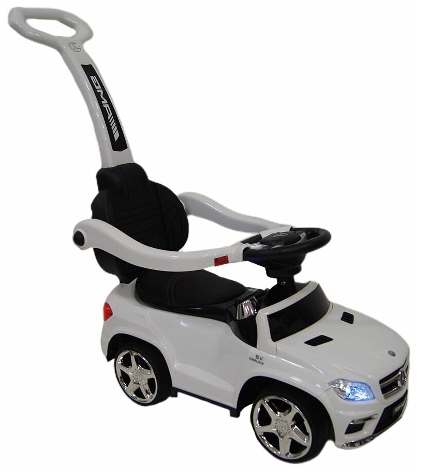 Детский толокар с функцией качалки кожаным сиденьем и резиновыми колесами белый Mercedes-Benz GL63 Лицензионная модель интересное: