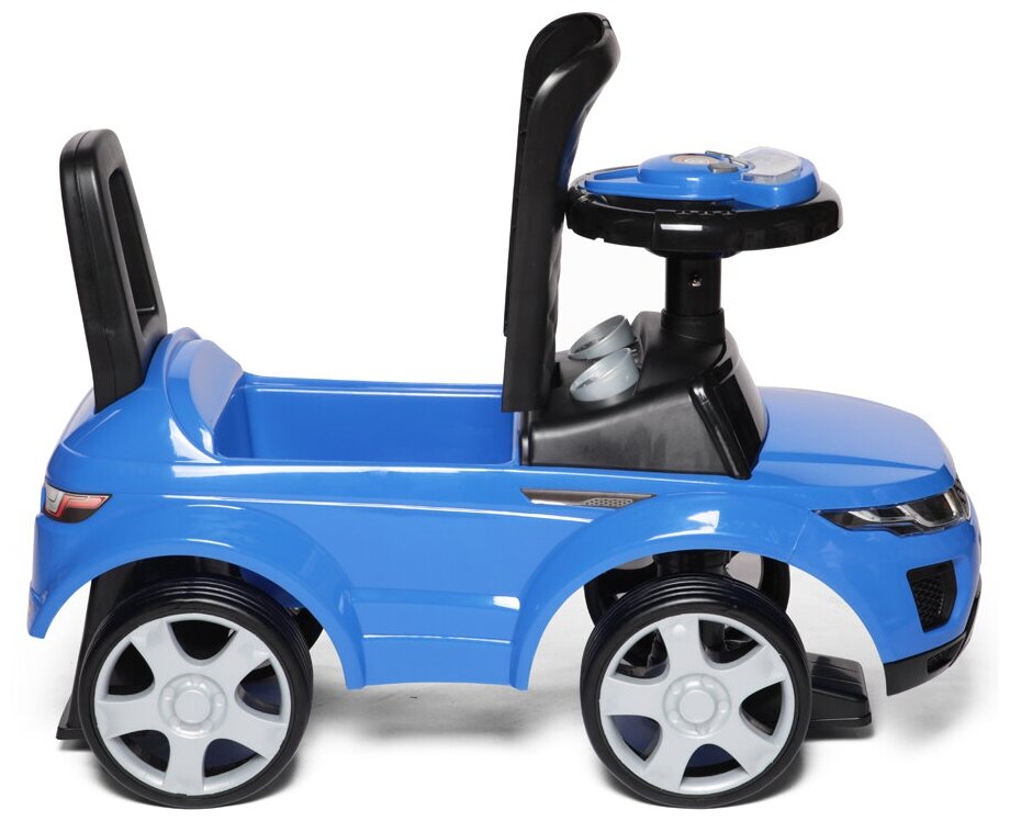 | Плюсы: | Крепкий, стильный и маневренный толокар по адекватной цене. Есть багажник для игрушек и звуковые эффекты. А главное, ребенку нравится! |