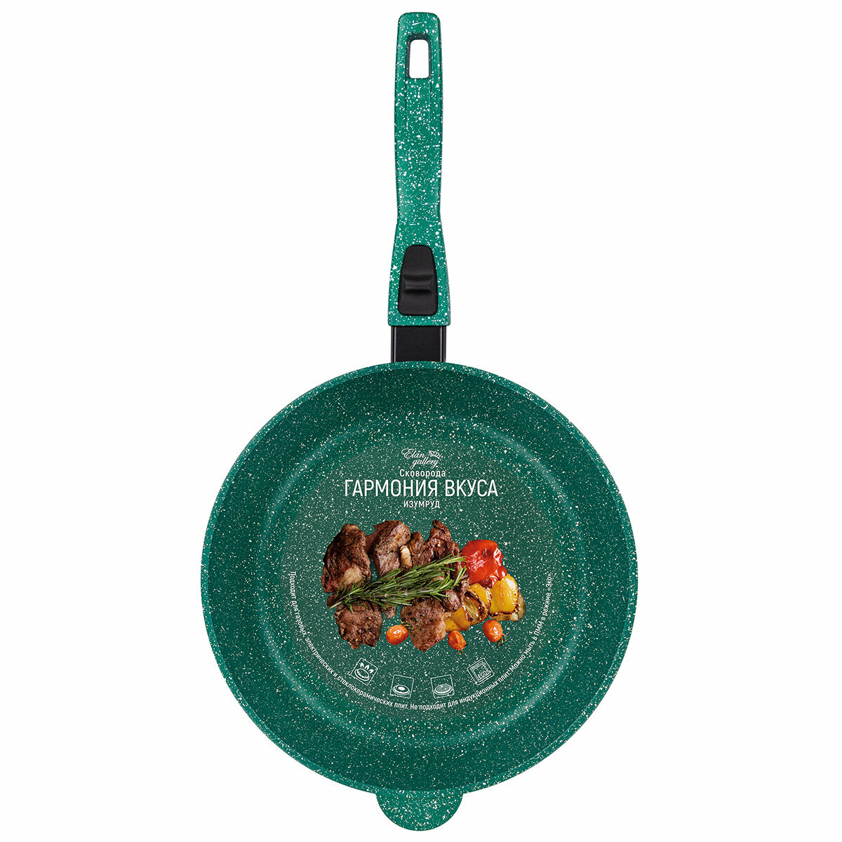 Сковорода глубокая 28 см Elan Gallery гармония вкуса Изумруд, со съёмной ручкой интересное: