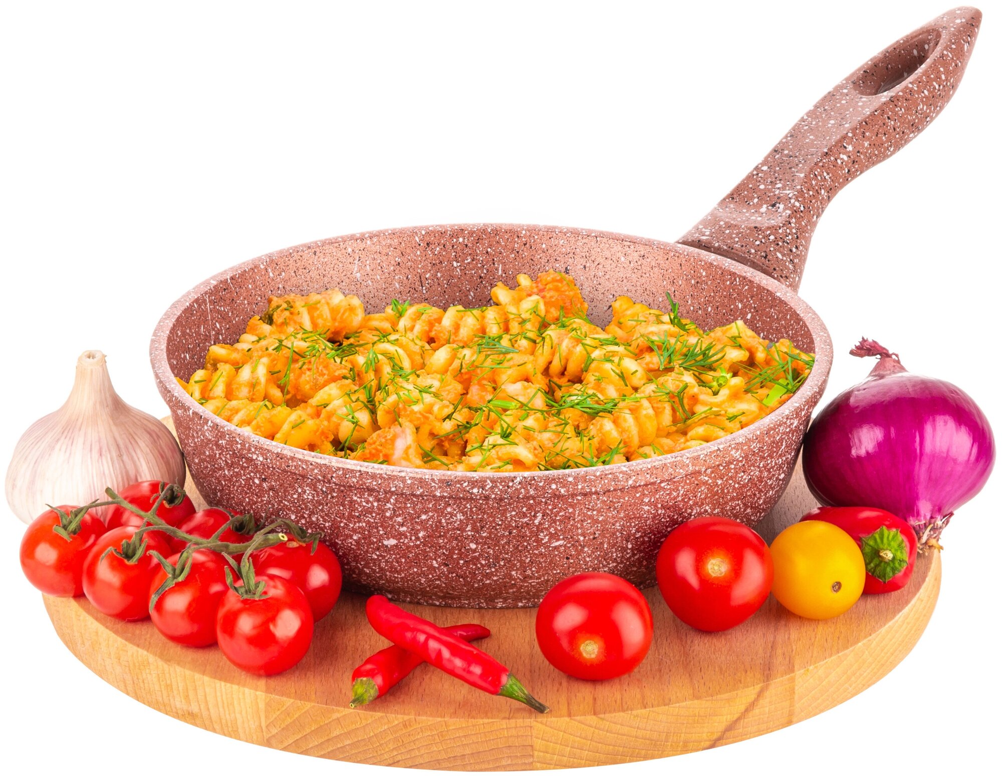 Сковорода глубокая 18 см Elan Gallery гармония вкуса Серый мрамор с крышкой D18, несъёмная ручка