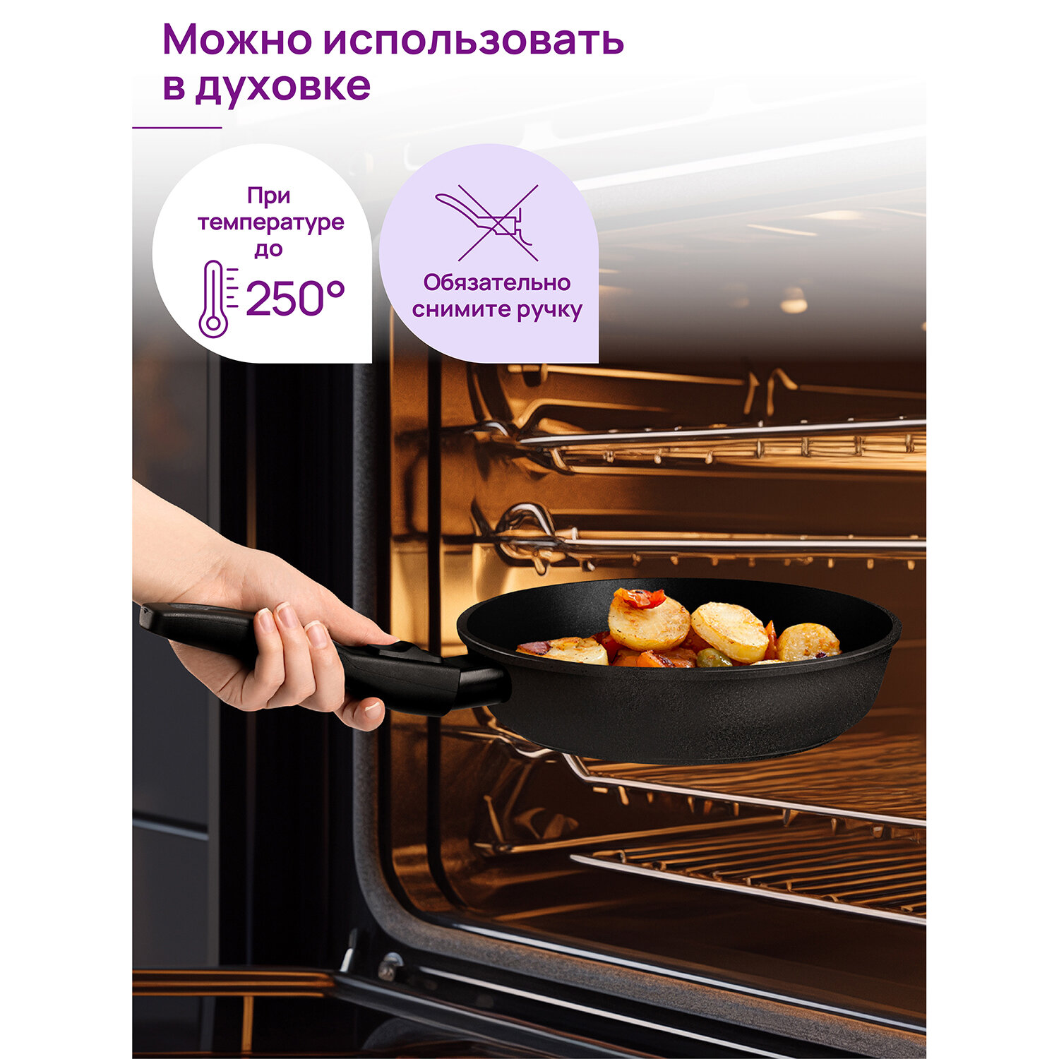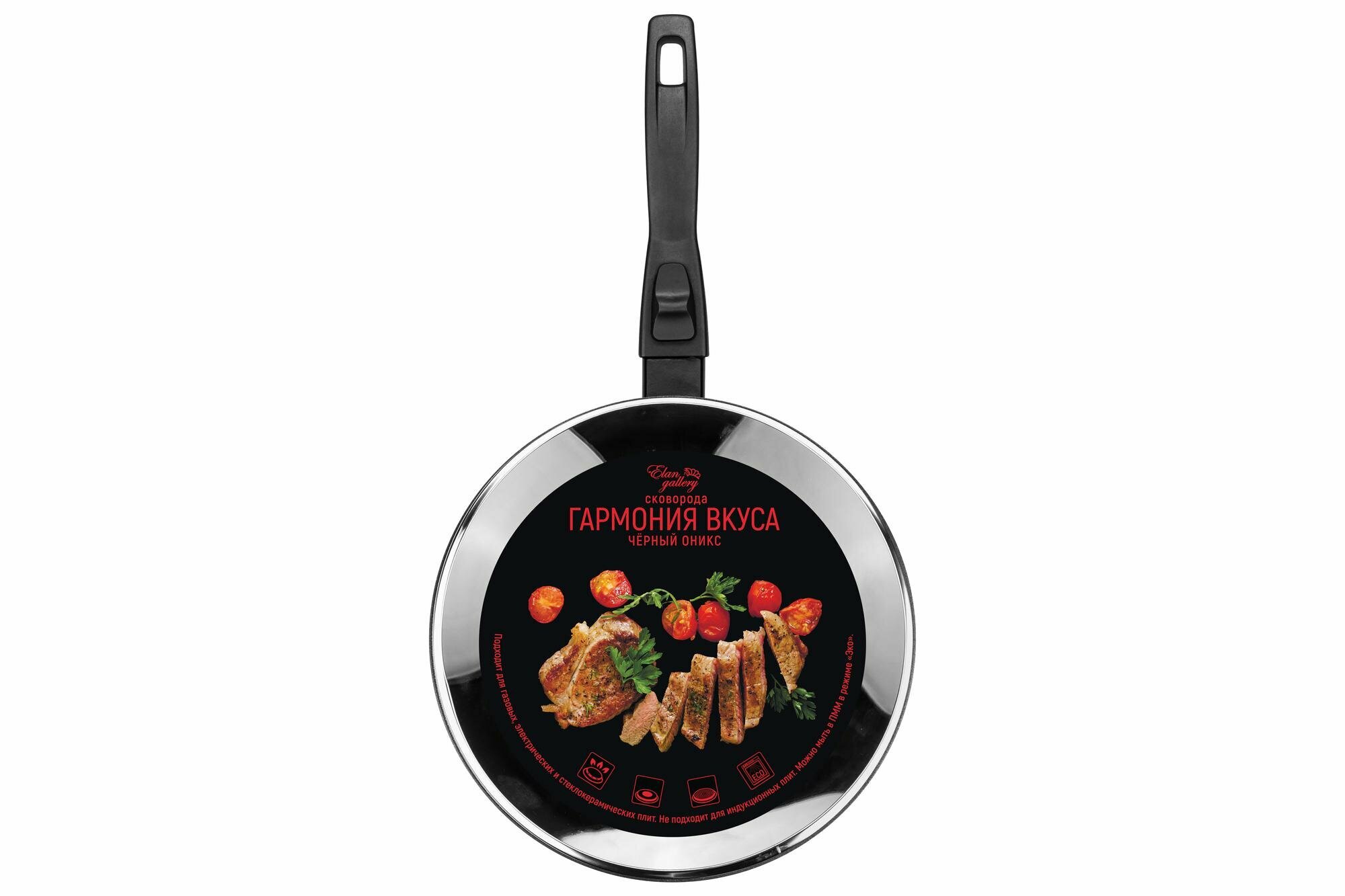 Сковорода глубокая 24 см Elan Gallery гармония вкуса Черный Оникс с крышкой D24, съёмная ручка интересное: