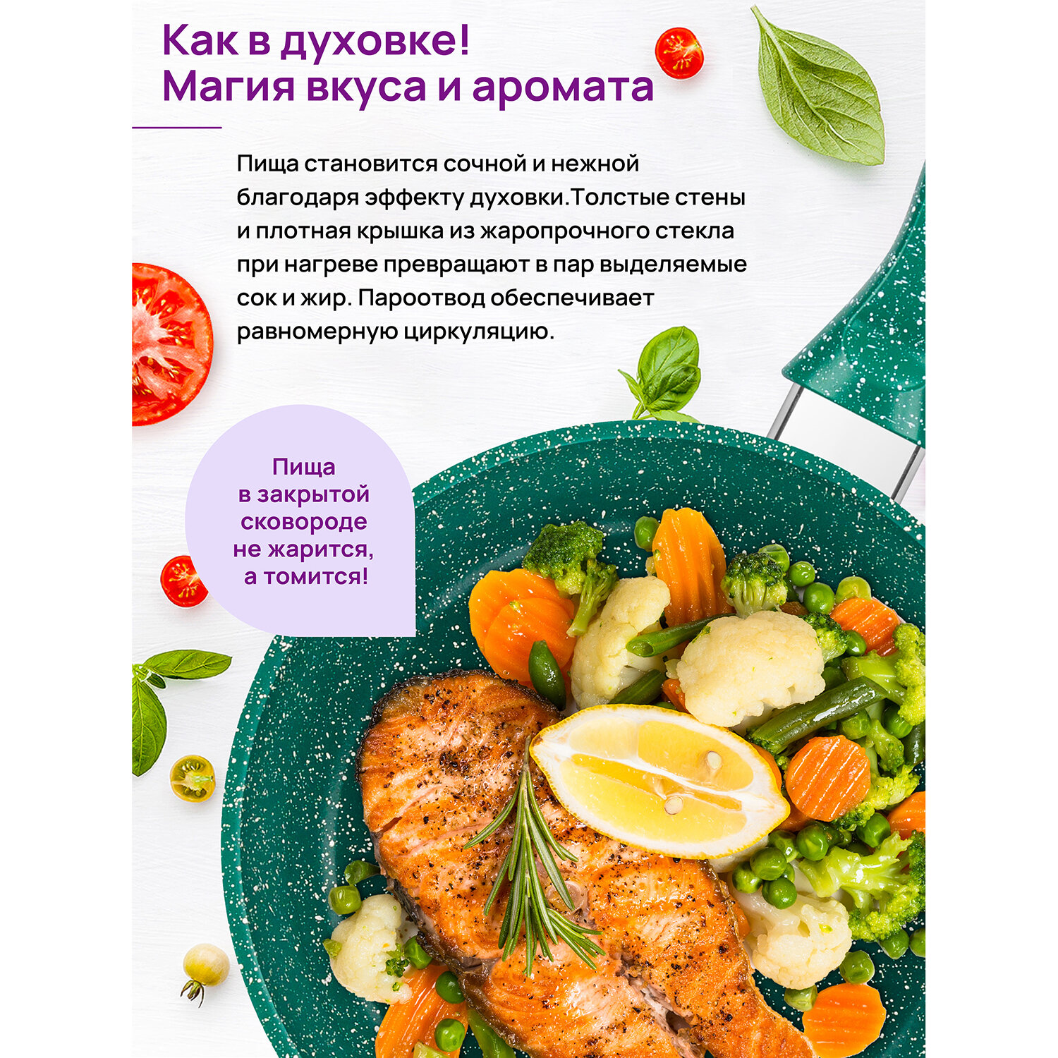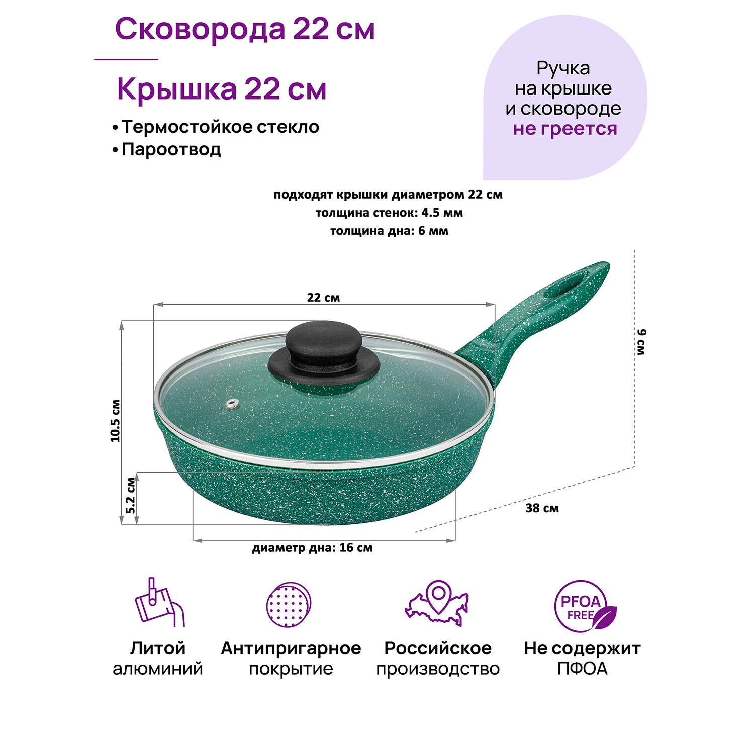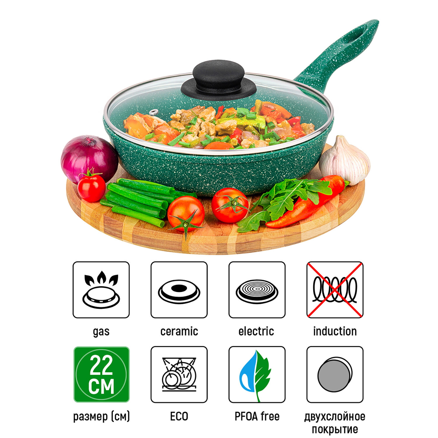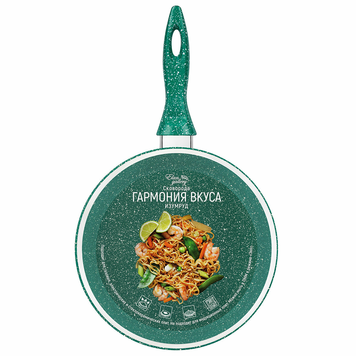 Сковорода глубокая 22 см Elan Gallery гармония вкуса Изумруд с крышкой D22, с несъёмной ручкой интересное: